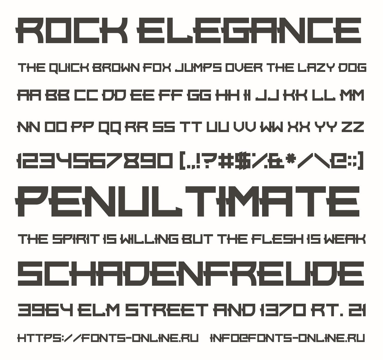 Шрифт Rock Elegance. Гарнитура содержит 1 файл и поддерживает 12 языков. Можно использовать в не коммерческой деятельности. Разработка Rock Elegance велась Chequered Ink.