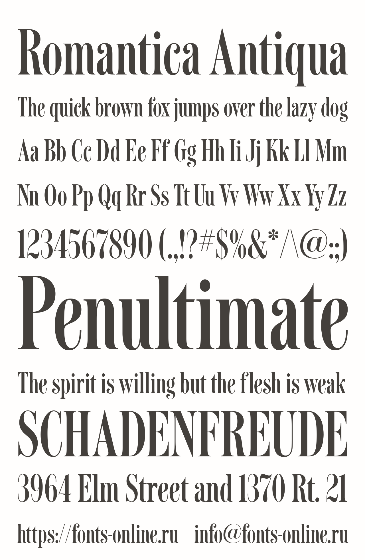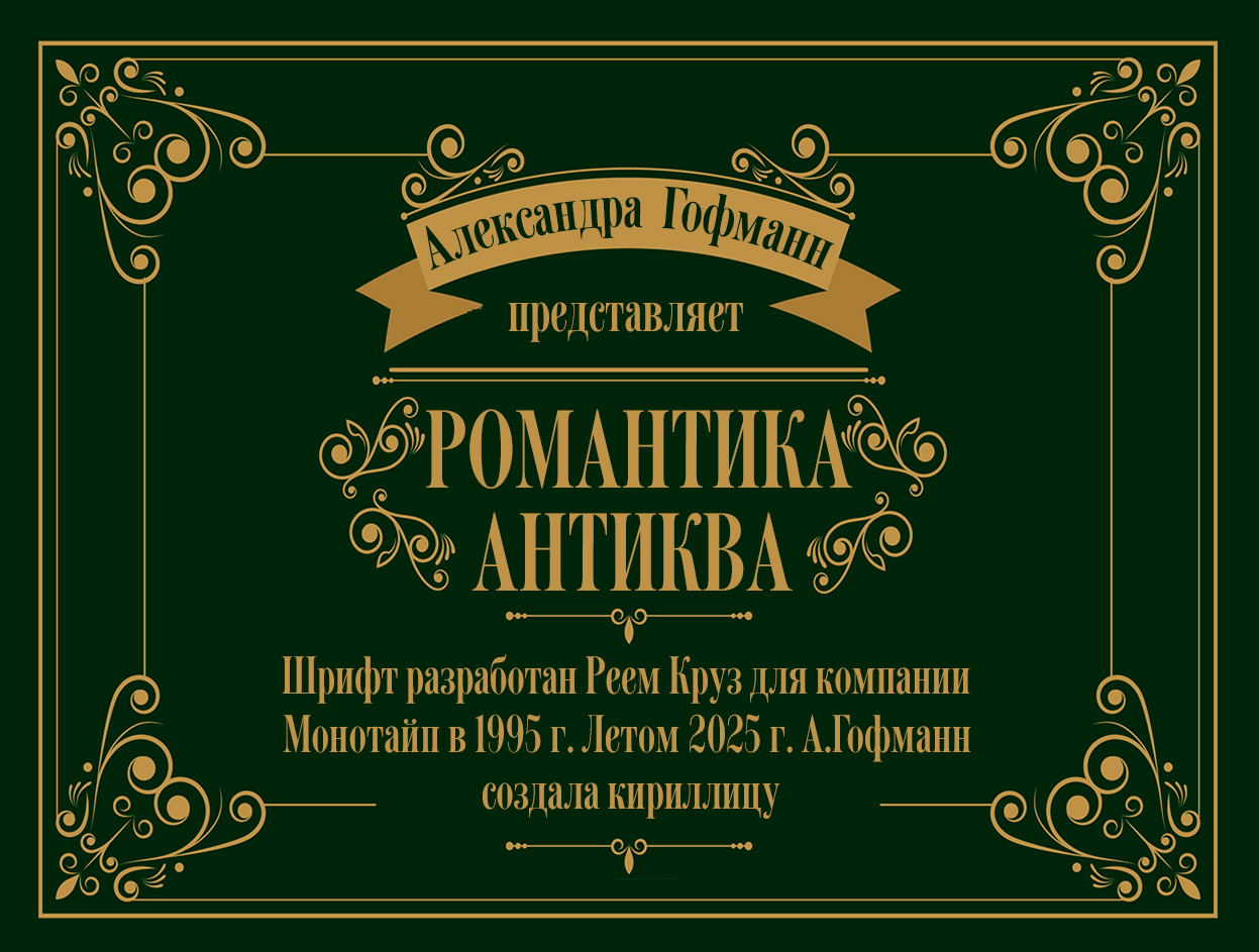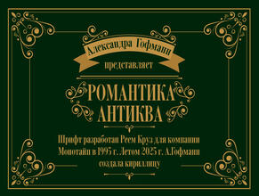 Шрифт Romantica Antiqua. Гарнитура содержит 1 файл и поддерживает 74 языка. Можно использовать в не коммерческой деятельности. Разработка Romantica Antiqua велась Alexandra Gophmann.