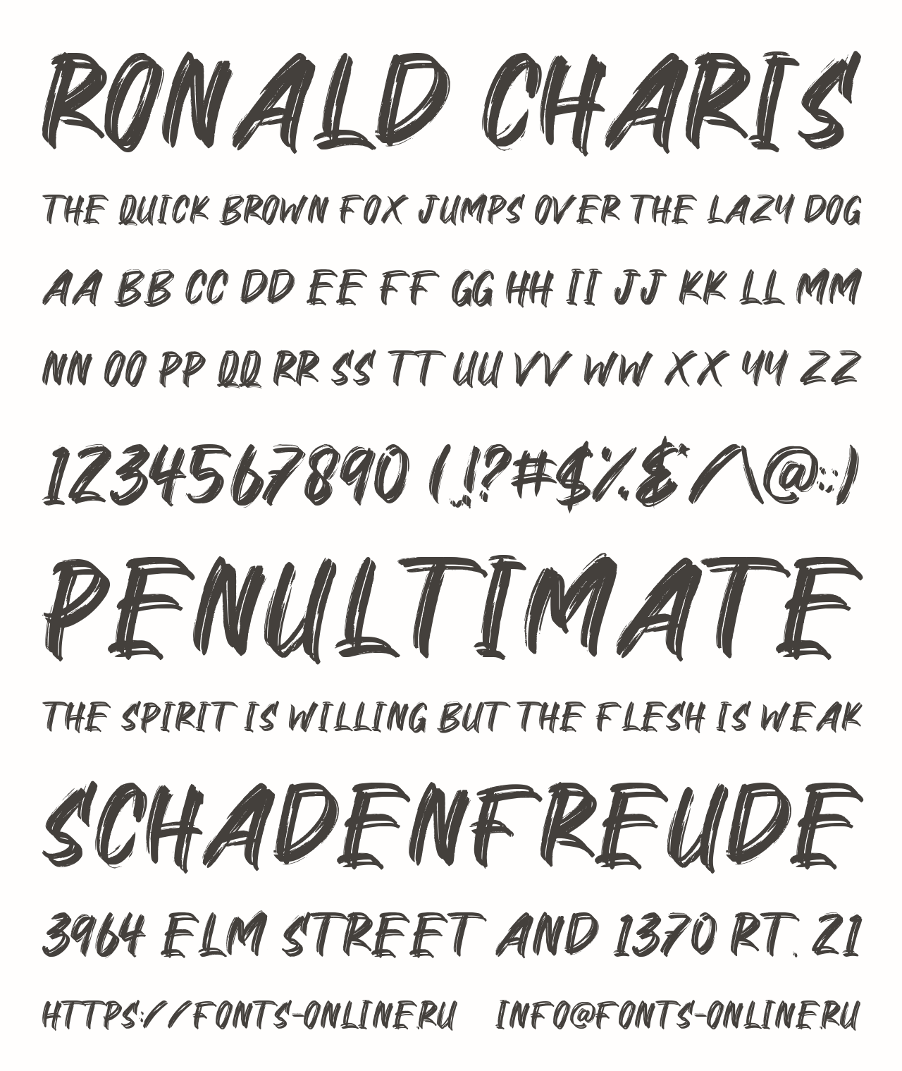 Шрифт Ronald Charis. Гарнитура содержит 1 файл и поддерживает 36 языков. Можно использовать в не коммерческой деятельности.