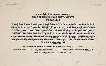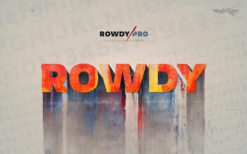 Шрифт Rowdy. Гарнитура содержит 3 файла и поддерживает 60 языков. Разработка Rowdy велась MagicType.