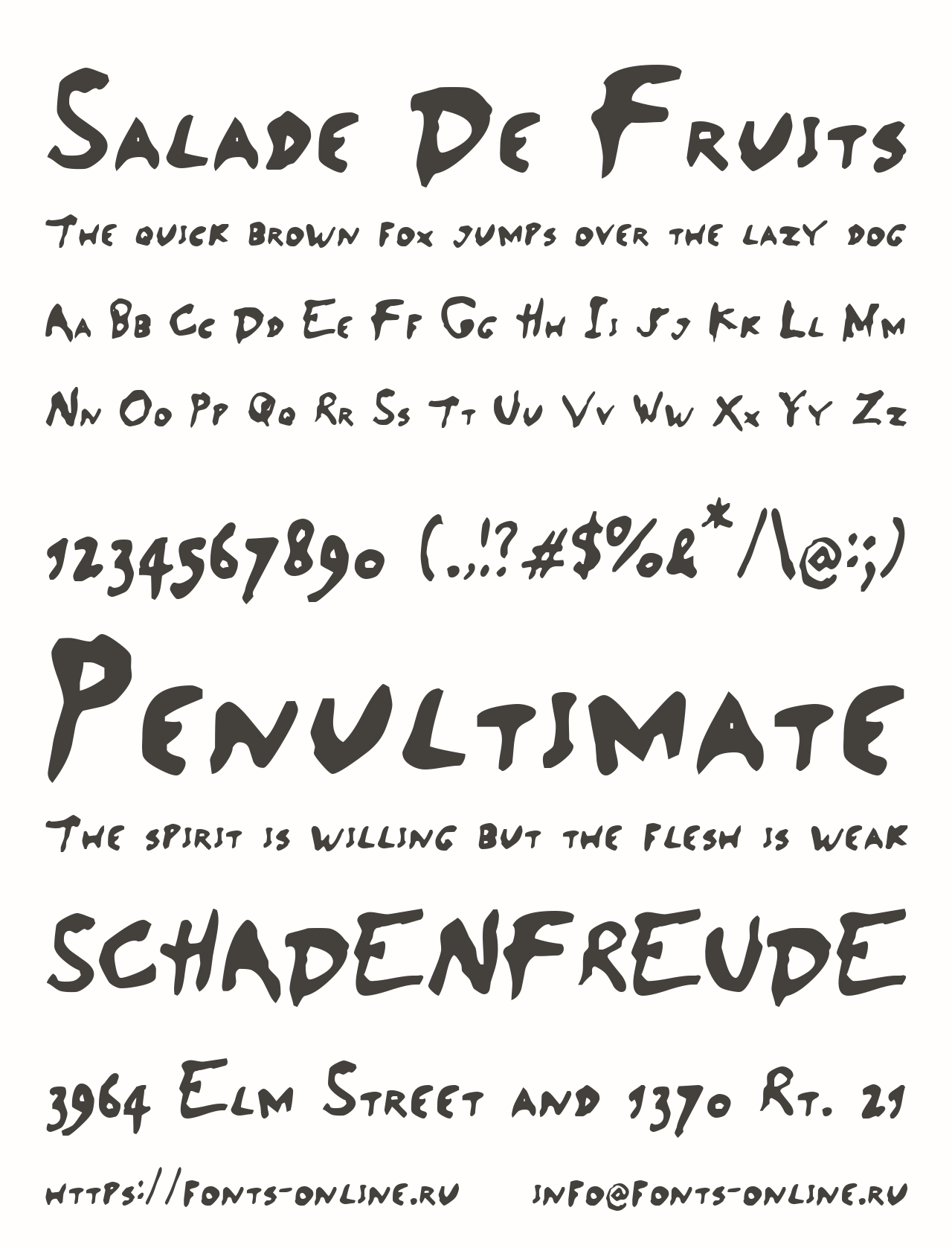 Шрифт Salade De Fruits. Гарнитура содержит 4 файла и поддерживает 38 языков. Можно использовать в коммерческой и не коммерческой деятельности.
