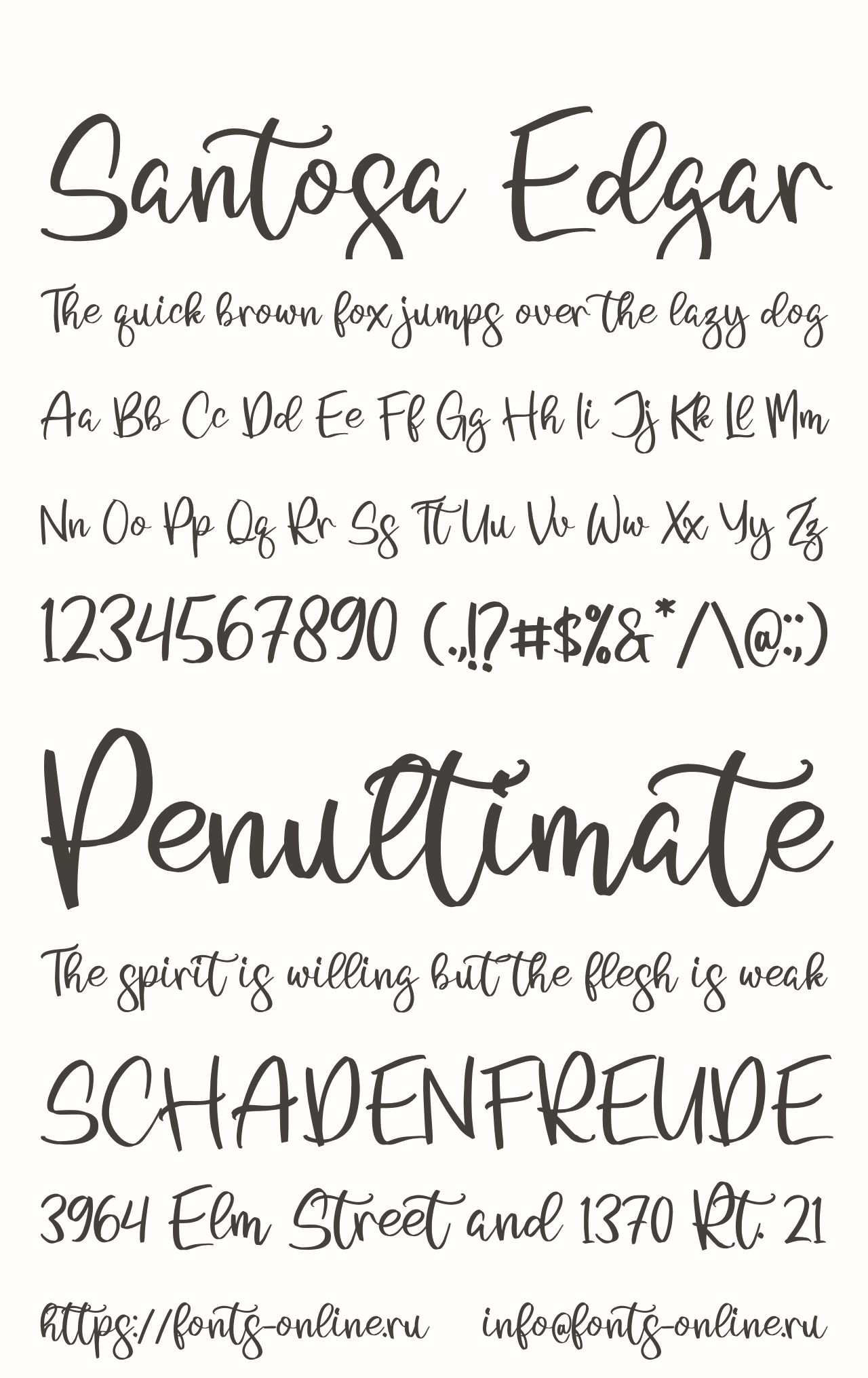 Шрифт Santosa Edgar. Гарнитура содержит 1 файл и поддерживает 39 языков. Можно использовать в не коммерческой деятельности.