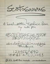 Шрифт Scotosaurus. Гарнитура содержит 1 файл и поддерживает 12 языков. Можно использовать в не коммерческой деятельности. Разработка Scotosaurus велась Scott Aneloski.