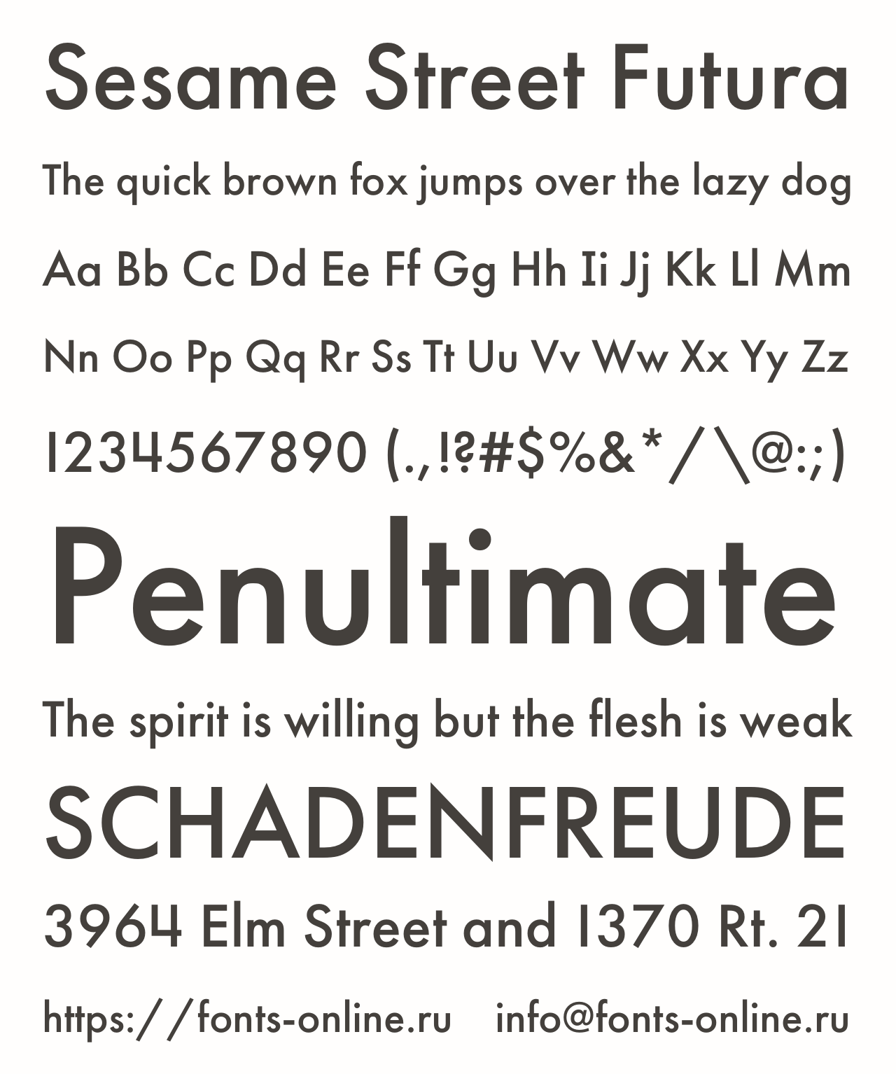 Sesame Street Futura PinterestFacebookTwitter Скачать Sesame Street Futura Тестировать Sesame Street Futura Сообщить об ошибке Шрифт Sesame Street Futura. Гарнитура содержит 1 файл и поддерживает 12 языков. Copyright Copyright © 1969-2023 Children’s Television Workshop All rights reserved. Дополнительная информация Категории Тематические шрифты Альтернативные шрифты Шрифты без засечек Шрифты для заголовков Языки Английский Зулу Индонезийский Корнский Оромо Руанда Рунди Северный ндебеле Сомалийский Суахили Узбекский Шона