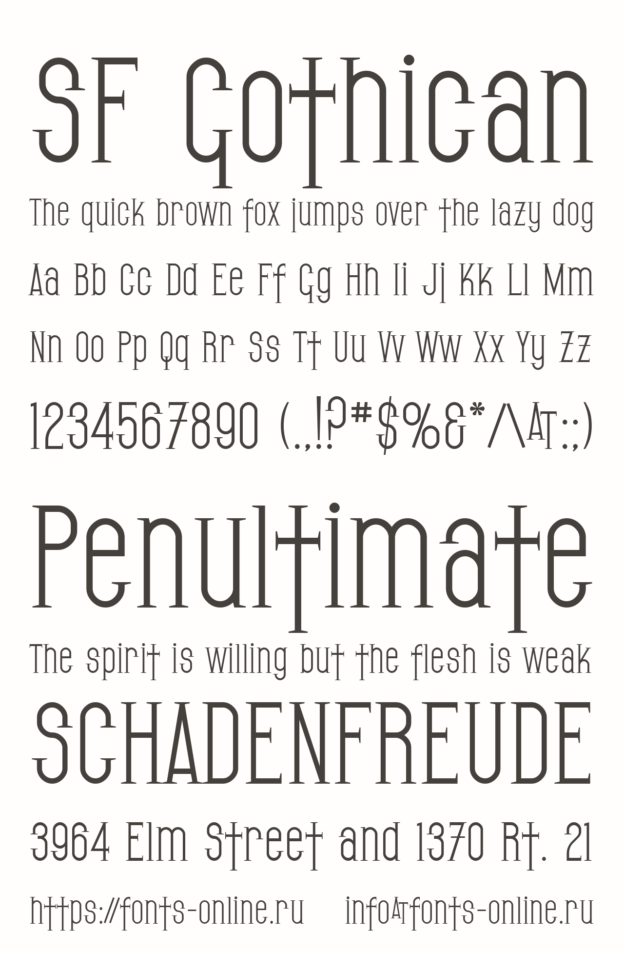 Шрифт SF Gothican. Гарнитура содержит 8 файлов и поддерживает 31 язык. Можно использовать в не коммерческой деятельности.