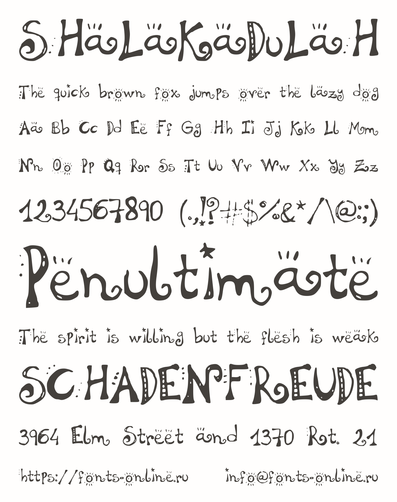Шрифт SHaLaKaDuLaH. Гарнитура содержит 1 файл и поддерживает 18 языков. Можно использовать в коммерческой и не коммерческой деятельности.