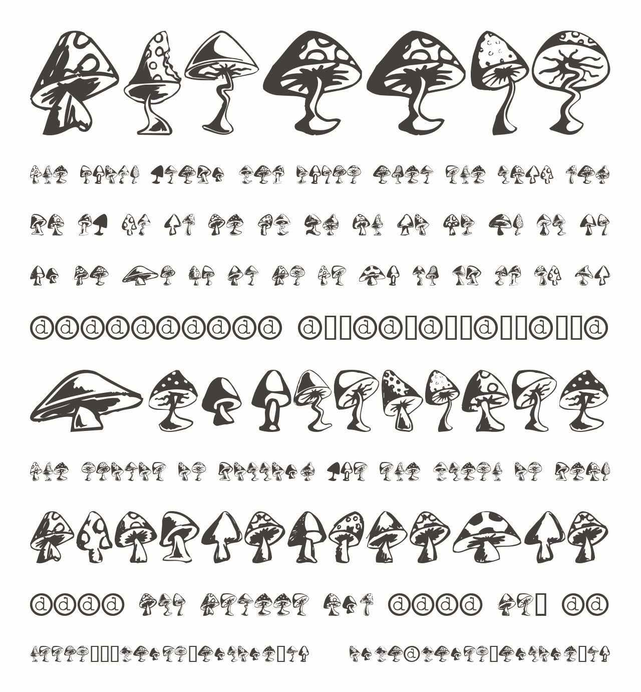 Шрифт Shrooms. Гарнитура содержит 1 файл и поддерживает 12 языков. Можно использовать в коммерческой и не коммерческой деятельности.