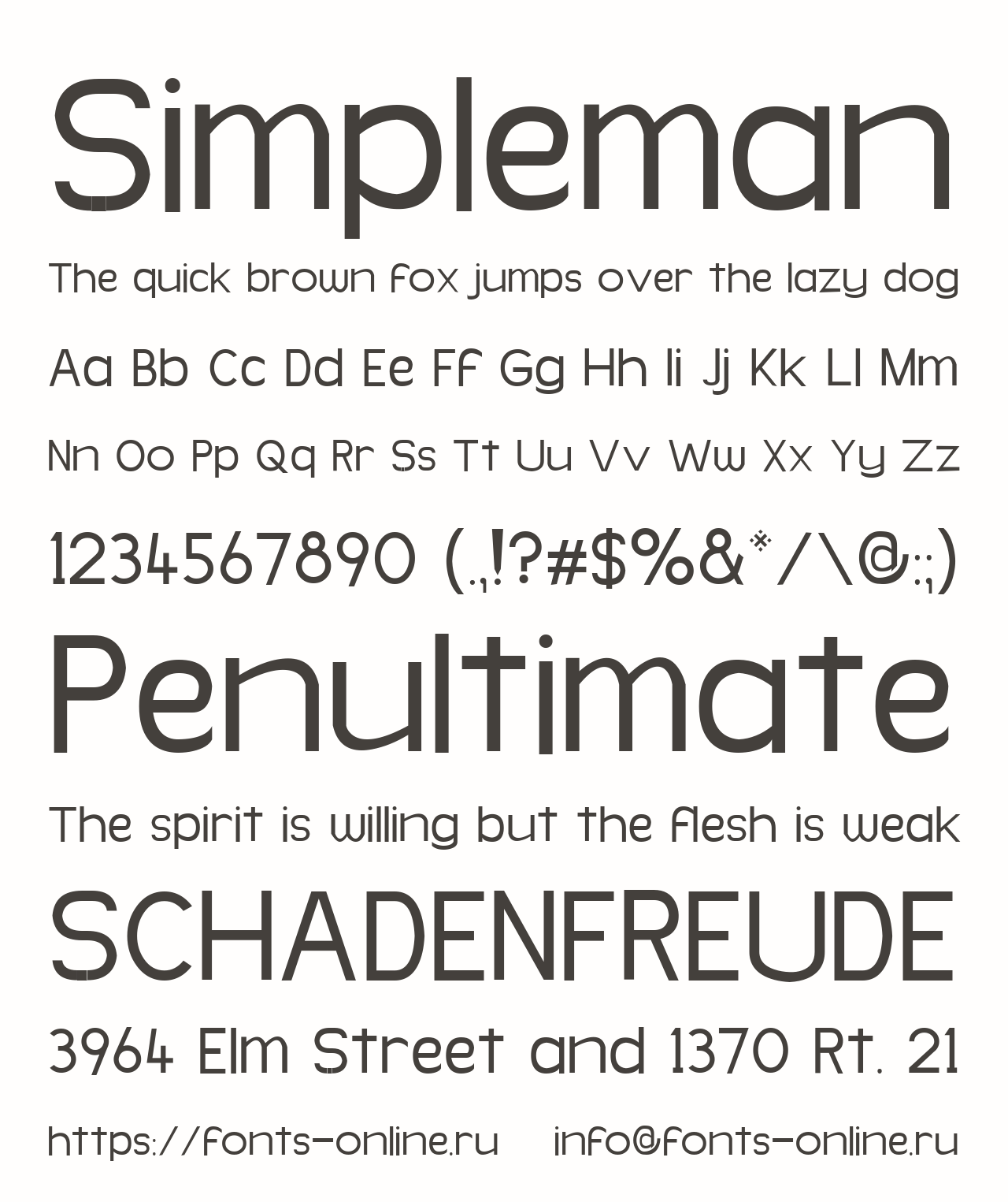 Шрифт Simpleman. Гарнитура содержит 1 файл и поддерживает 12 языков. Можно использовать в коммерческой и не коммерческой деятельности.