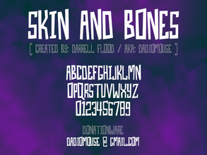 Шрифт Skin And Bones. Гарнитура содержит 1 файл и поддерживает 12 языков. Разработка Skin And Bones велась Darrell Flood.