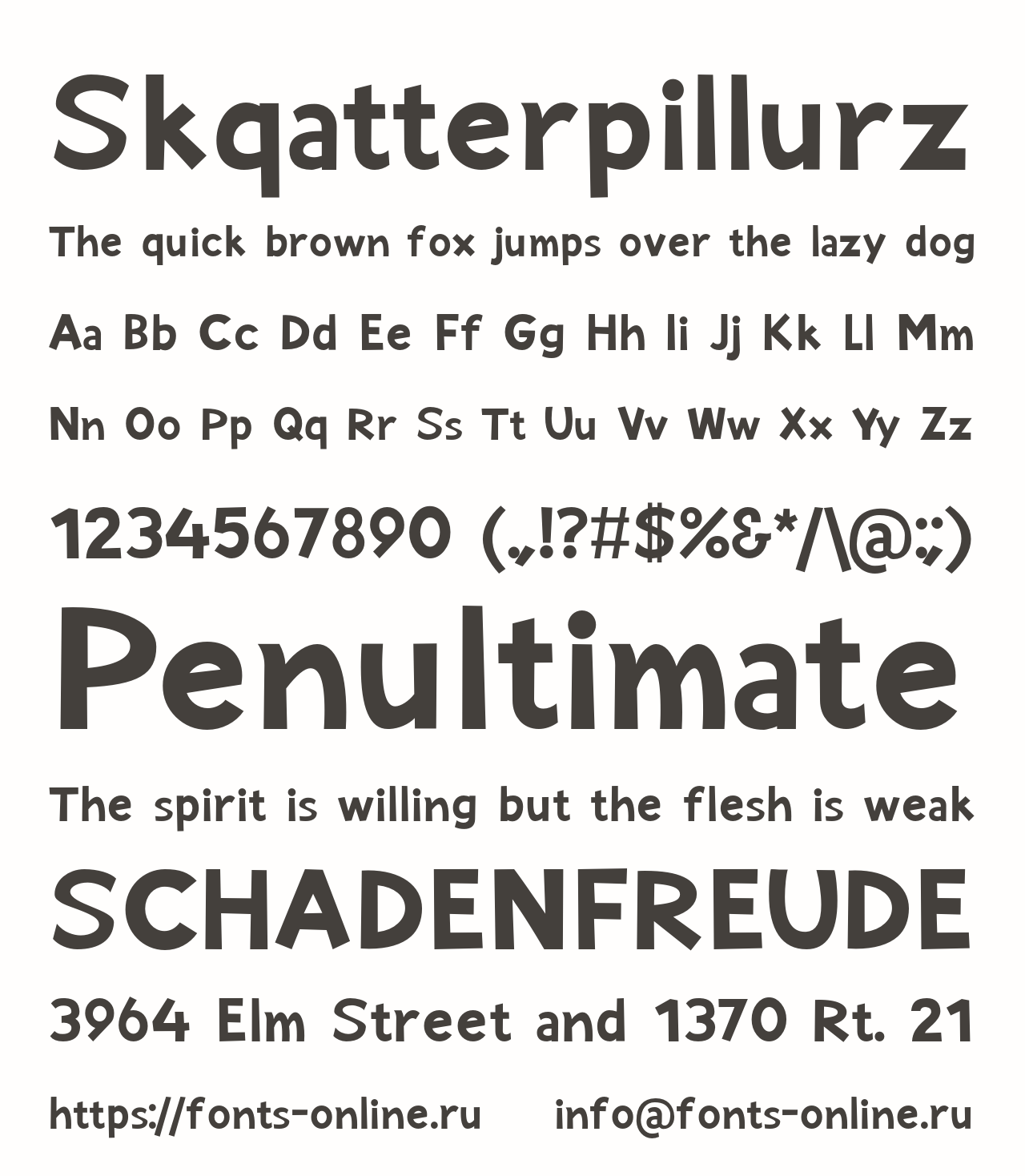Skqatterpillurz PinterestFacebookTwitter Скачать Skqatterpillurz Тестировать Skqatterpillurz Сообщить об ошибке Шрифт Skqatterpillurz. Гарнитура содержит 3 файла и поддерживает 37 языков. Описание Skqatterpillurz has a powerful feel. Copyright Copyright (c) 2025, Klasky Wolf Lodge Дополнительная информация Категории Тематические шрифты Комические шрифты Шрифты для комиксов Шрифты из мультфильмов Шрифты без засечек Шрифты для заголовков Языки Албанский Английский Африкаанс Баскский Бретонский Букмол Галисийский Датский Зулу Индонезийский Ирландский Исландский Испанский Итальянский Каталанский Кечуанский Корнский Люксембургский Малагасийский Мэнский Немецкий Нидерландский Новонорвежский Оромо Португальский Романшский Руанда Рунди Санго Северный ндебеле Сомалийский Суахили Узбекский Фарерский Шведский Шона Шотландский