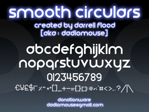 Шрифт Smooth Circulars. Гарнитура содержит 2 файла и поддерживает 12 языков. Разработка Smooth Circulars велась Darrell Flood.