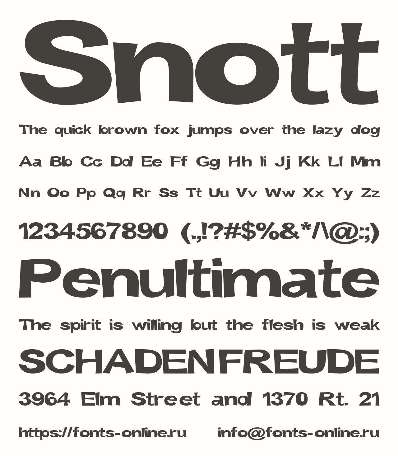 Шрифт Snott. Гарнитура содержит 4 файла и поддерживает 39 языков. Можно использовать в коммерческой и не коммерческой деятельности.