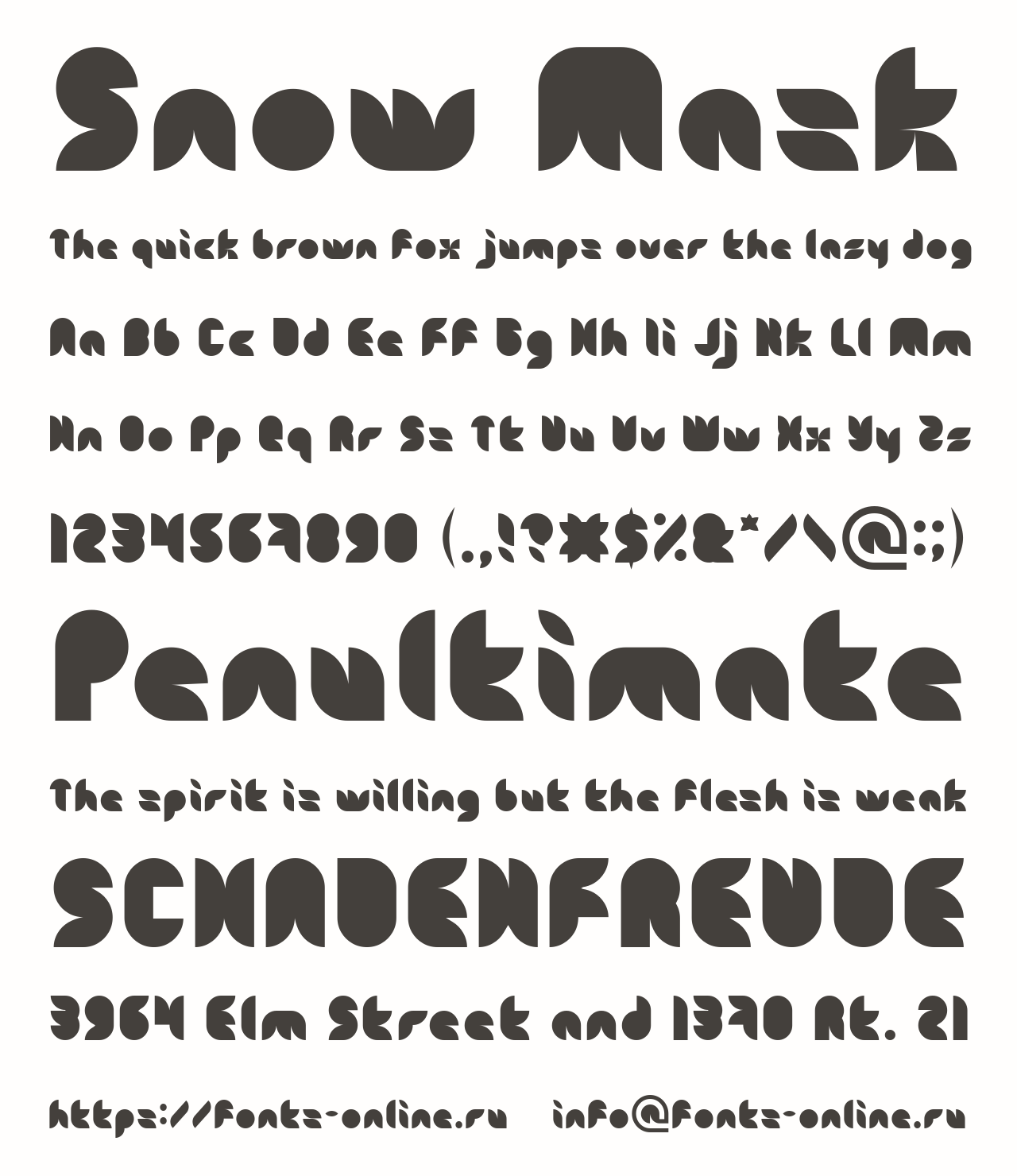 Шрифт Snow Mask. Гарнитура содержит 6 файлов и поддерживает 37 языков. Можно использовать в не коммерческой деятельности.