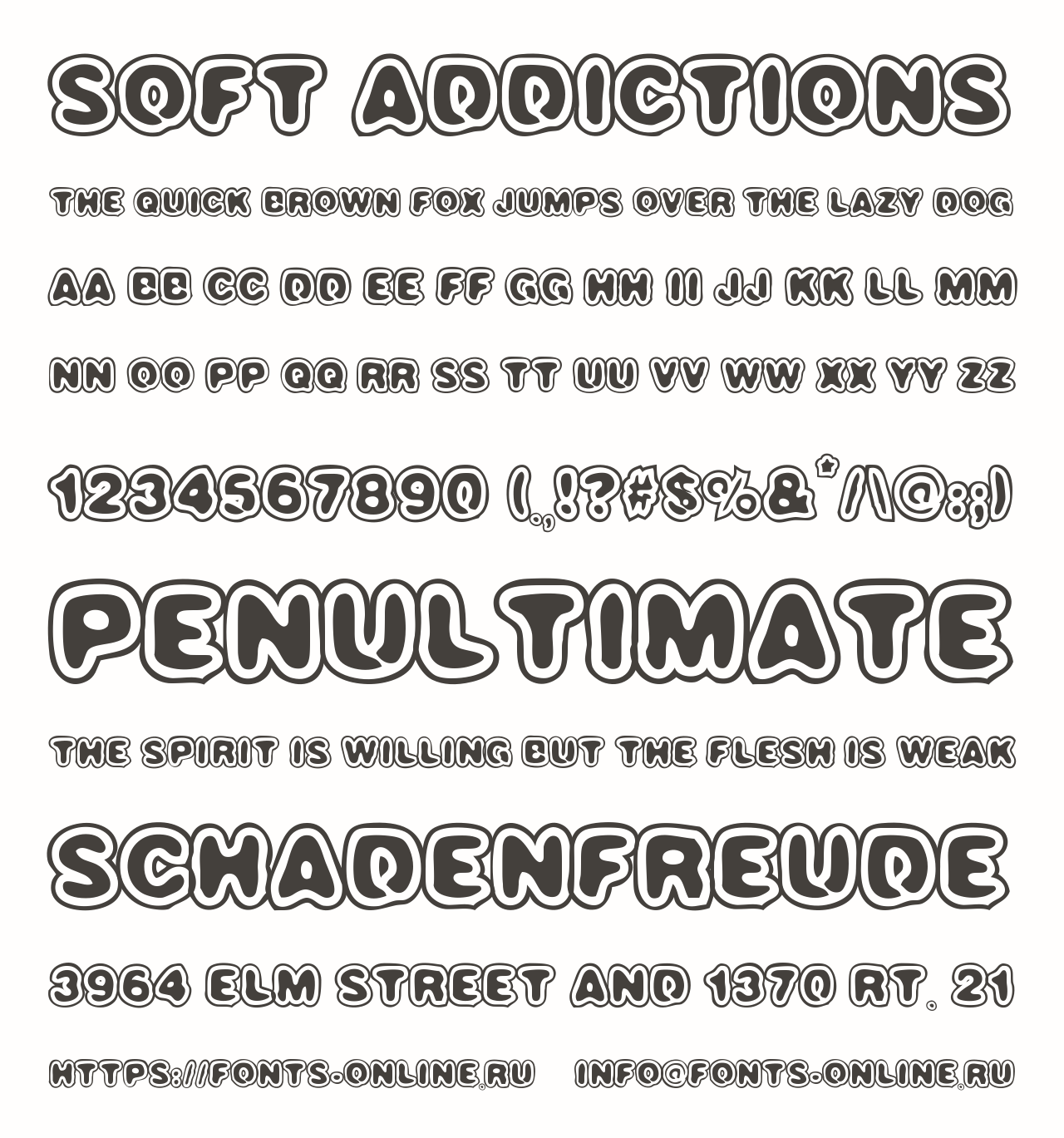 Шрифт SOFT ADDICTIONS. Гарнитура содержит 1 файл и поддерживает 37 языков. Разработка SOFT ADDICTIONS велась Woodcutter.