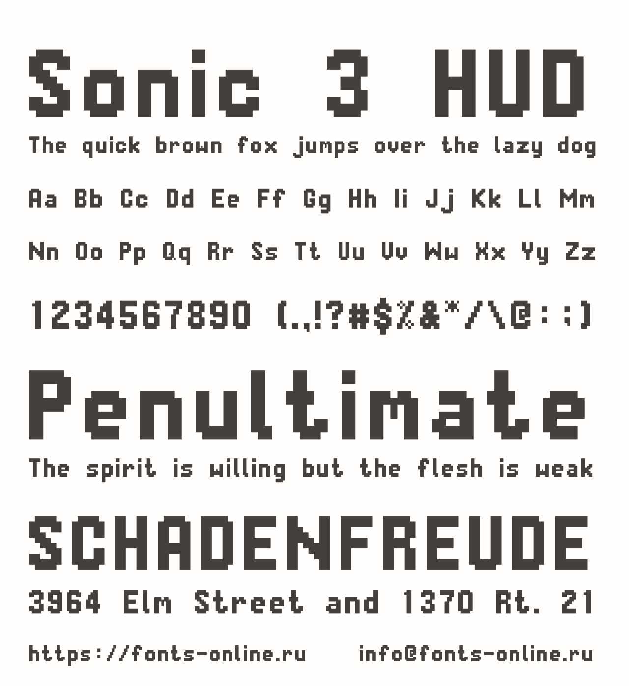 Sonic 3 HUD PinterestFacebookTwitter Скачать Sonic 3 HUD Тестировать Sonic 3 HUD Сообщить об ошибке Шрифт Sonic 3 HUD. Гарнитура содержит 1 файл и поддерживает 12 языков. Описание Fanmade recreation of the Sonic 3 HUD font. Copyright Дополнительная информация Категории Тематические шрифты Пиксельные шрифты Шрифты из игр Языки Английский Зулу Индонезийский Корнский Оромо Руанда Рунди Северный ндебеле Сомалийский Суахили Узбекский Шона