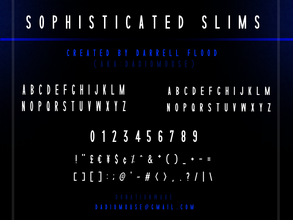Шрифт Sophisticated Slims Tight. Гарнитура содержит 4 файла и поддерживает 19 языков. Разработка Sophisticated Slims Tight велась Darrell Flood.
