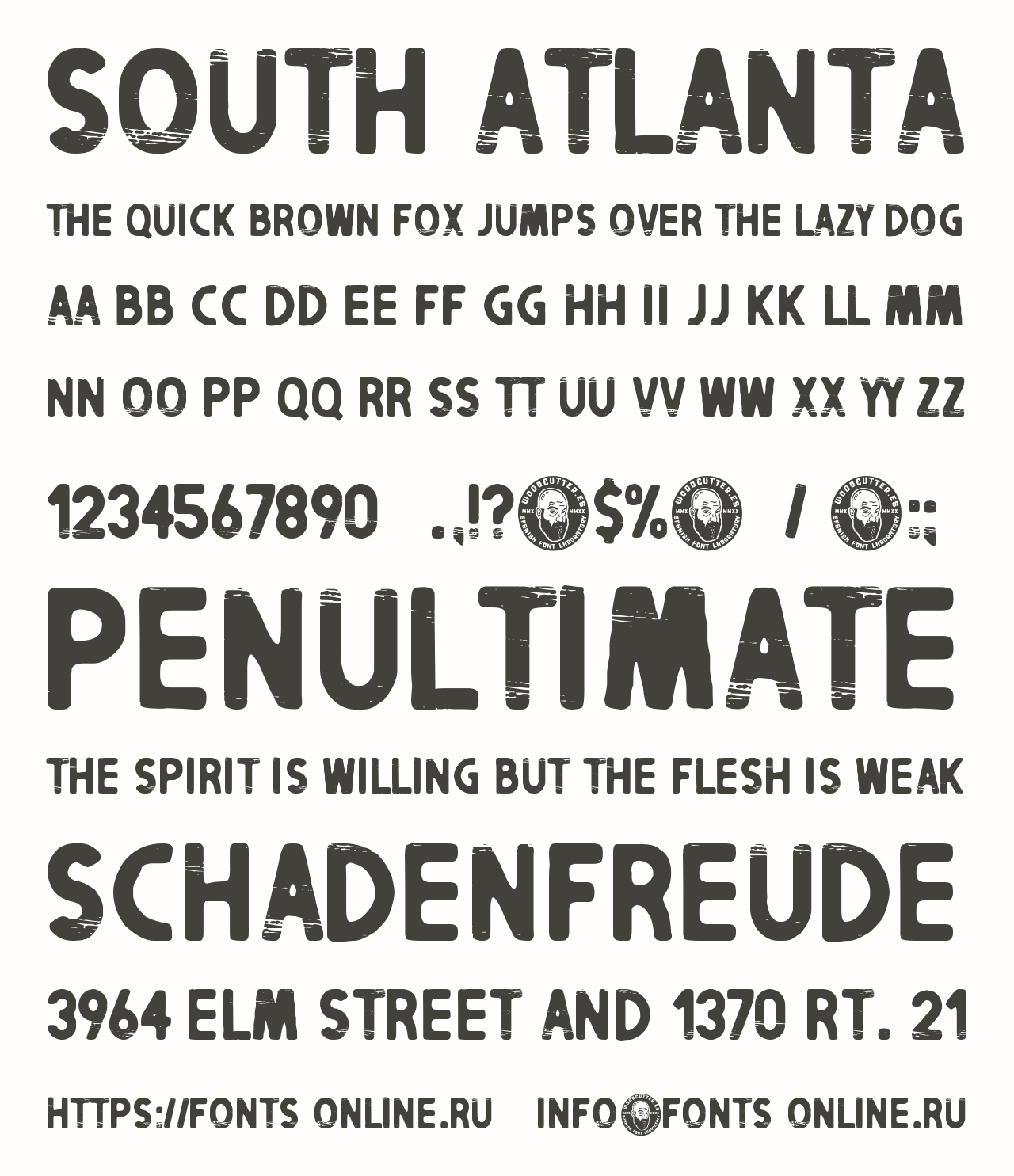 Шрифт South Atlanta. Гарнитура содержит 1 файл и поддерживает 37 языков. Можно использовать в не коммерческой деятельности. Разработка South Atlanta велась Woodcutter.
