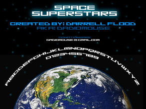 Шрифт Space Superstars. Гарнитура содержит 1 файл и поддерживает 12 языков. Разработка Space Superstars велась Darrell Flood.