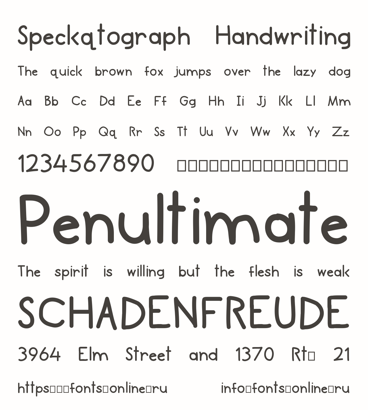 Шрифт Speckqtograph Handwriting. Гарнитура содержит 3 файла и поддерживает 39 языков.