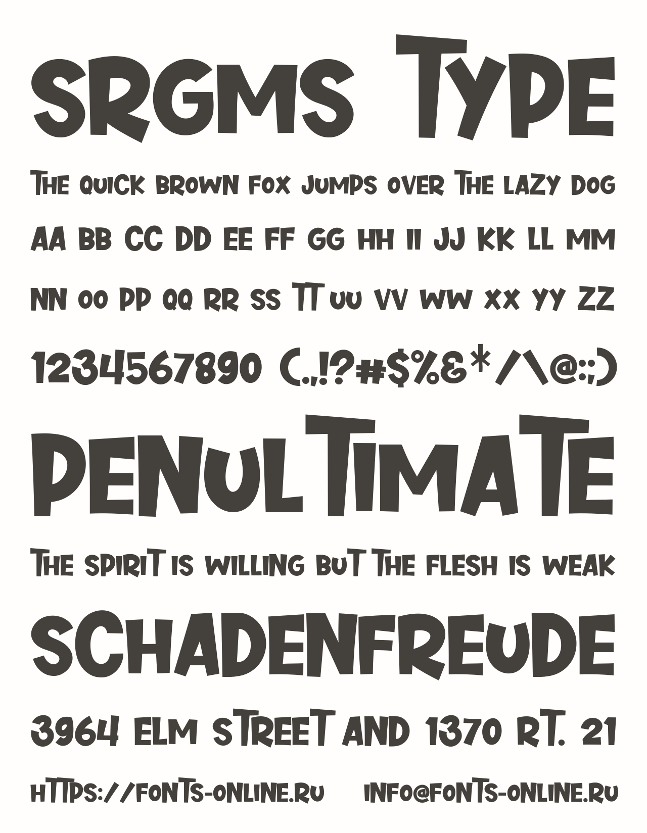 Шрифт SRGMs Type. Гарнитура содержит 1 файл и поддерживает 41 язык. Разработка SRGMs Type велась Typodermic Fonts.