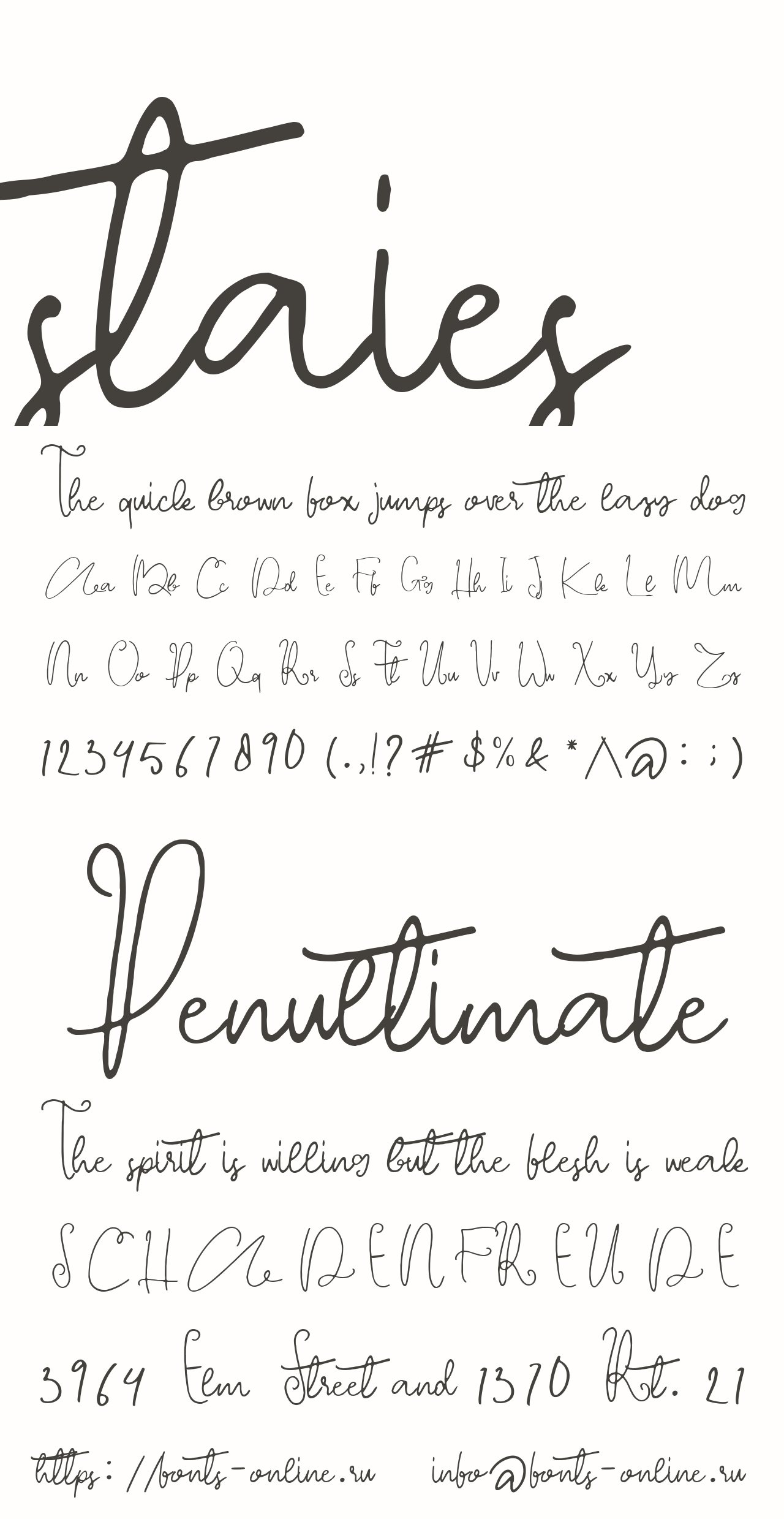 Шрифт staies. Гарнитура содержит 1 файл и поддерживает 12 языков. Можно использовать в не коммерческой деятельности. Разработка staies велась Mariyana.