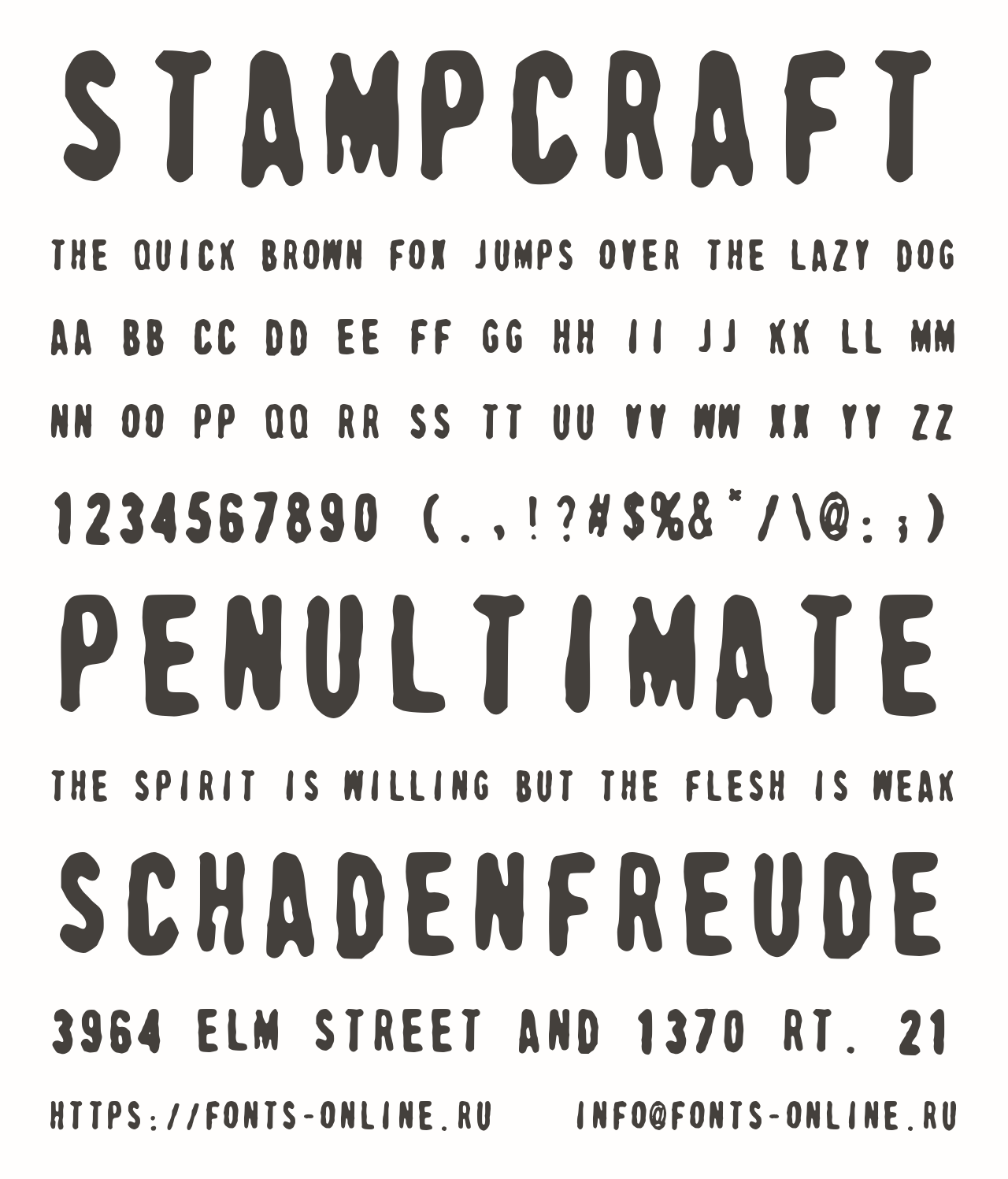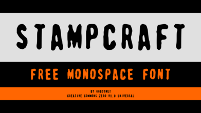 Шрифт Stampcraft. Гарнитура содержит 2 файла и поддерживает 32 языка. Лицензия CC0 1.0. Можно использовать в коммерческой и не коммерческой деятельности. Разработка Stampcraft велась GGBotNet.