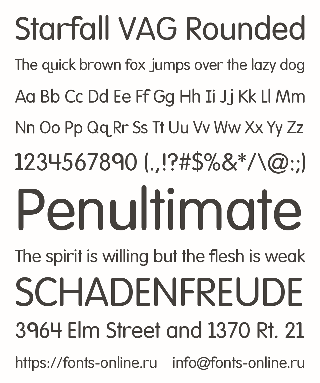 Starfall VAG Rounded PinterestFacebookTwitter Скачать Starfall VAG Rounded Тестировать Starfall VAG Rounded Сообщить об ошибке Шрифт Starfall VAG Rounded. Гарнитура содержит 2 файла и поддерживает 69 языков. Copyright Copyright © 2018 Monotype GmbH. All rights reserved. Дополнительная информация Категории Шрифты без засечек Шрифты для заголовков Шрифты для текста Языки Азербайджанский Албанский Английский Африкаанс Баскский Белорусский Болгарский Боснийский Бретонский Букмол Валлийский Венгерский Волапюк Галисийский Гренландский Греческий Датский Западнофризский Зулу Индонезийский Ирландский Исландский Испанский Итальянский Каталанский Кечуанский Кикуйю Корнский Латышский Литовский Луганда Люксембургский Македонский Малагасийский Мальтийский Мэнский Немецкий Нидерландский Новонорвежский Оромо Польский Португальский Романшский Руанда Румынский Рунди Русский Санго Северносаамский Северный ндебеле Сербский Словацкий Словенский Сомалийский Суахили Турецкий Узбекский Украинский Фарерский Финский Французский Хорватский Чеченский Чешский Шведский Шона Шотландский Эсперанто Эстонский