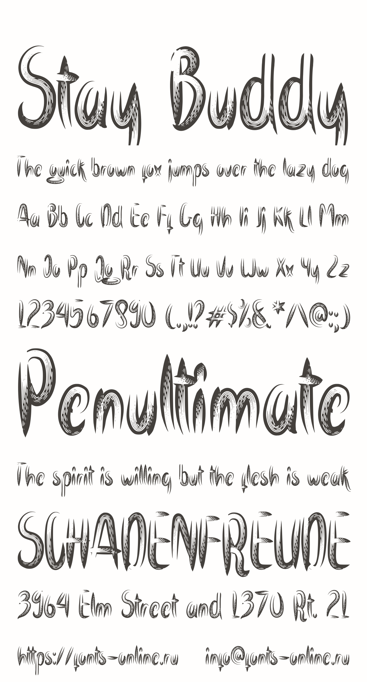 Шрифт Stay Buddy. Гарнитура содержит 8 файлов и поддерживает 12 языков. Можно использовать в не коммерческой деятельности. Разработка Stay Buddy велась SSI.Scraps.