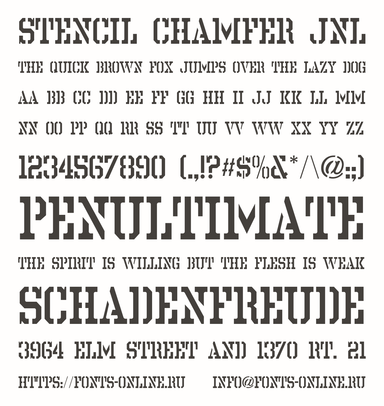 Stencil Chamfer JNL PinterestFacebookTwitter Скачать Stencil Chamfer JNL Тестировать Stencil Chamfer JNL Сообщить об ошибке Шрифт Stencil Chamfer JNL. Гарнитура содержит 2 файла и поддерживает 41 язык. Изображения Copyright (c) 2019 by Jeffrey N. Levine. All rights reserved. Дополнительная информация Категории Тематические шрифты Армейские шрифты Трафаретные шрифты Шрифты для заголовков Шрифты для текста Шрифты с засечками Языки Албанский Английский Африкаанс Баскский Бретонский Букмол Волапюк Галисийский Датский Зулу Индонезийский Ирландский Исландский Испанский Итальянский Каталанский Кечуанский Корнский Люксембургский Малагасийский Мэнский Немецкий Нидерландский Новонорвежский Оромо Португальский Романшский Руанда Рунди Санго Северный ндебеле Сомалийский Суахили Узбекский Фарерский Финский Французский Шведский Шона Шотландский Эстонский