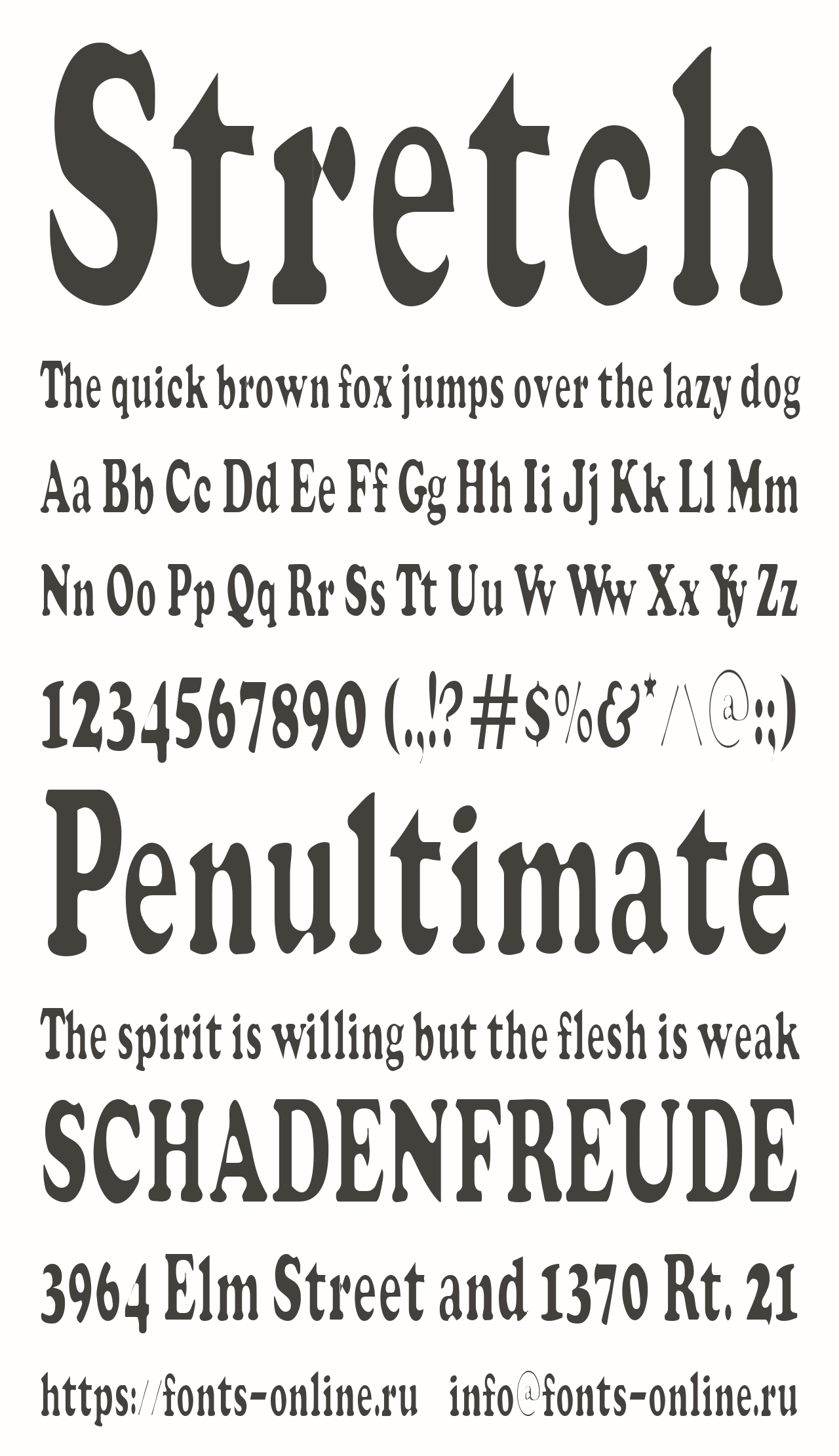Шрифт Stretch. Гарнитура содержит 1 файл и поддерживает 39 языков. Можно использовать в коммерческой и не коммерческой деятельности.