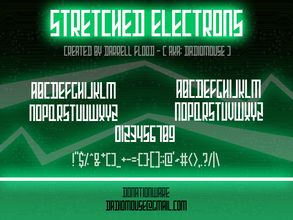 Шрифт Stretched Electrons. Гарнитура содержит 2 файла и поддерживает 12 языков. Разработка Stretched Electrons велась Darrell Flood.