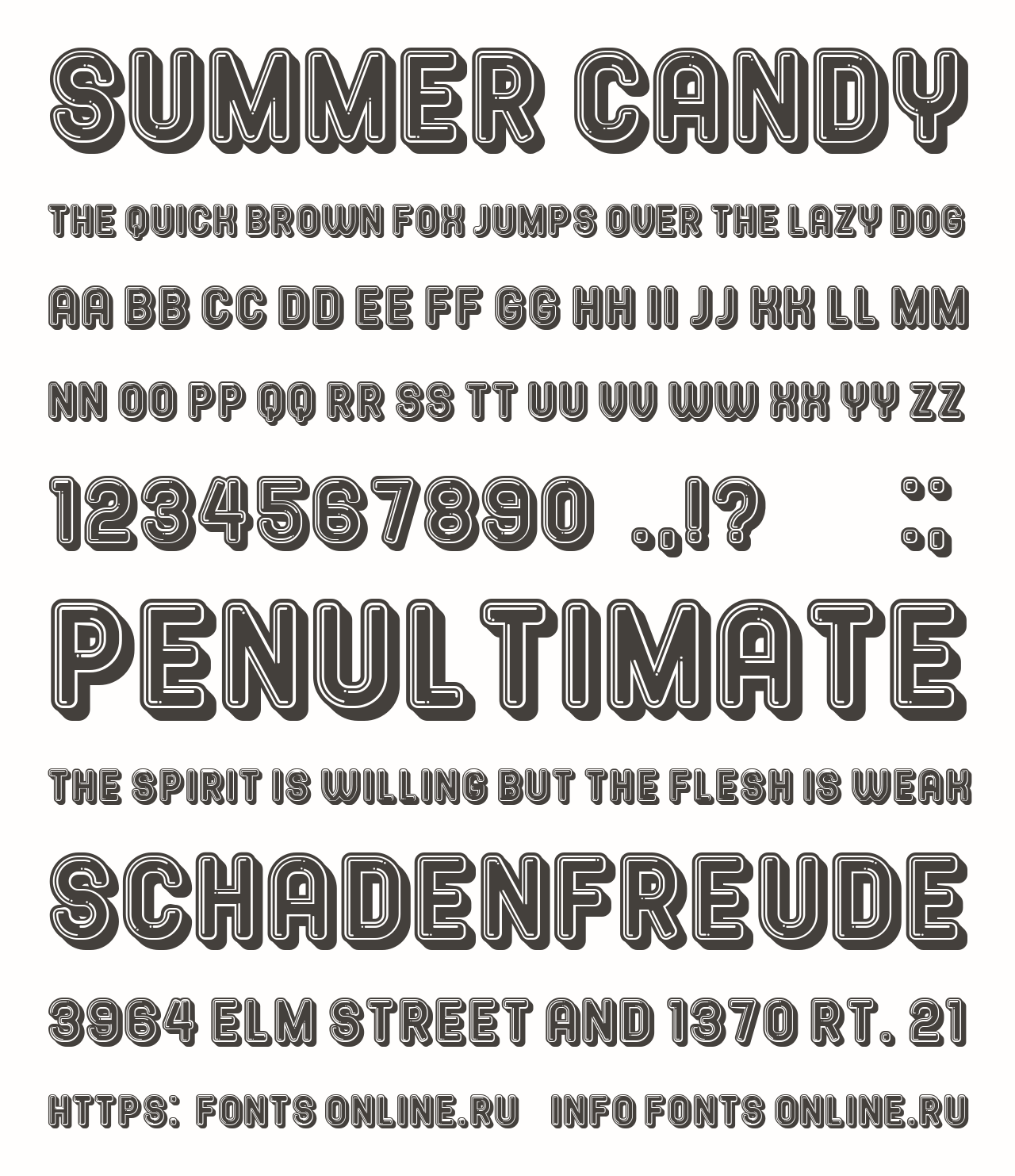 Шрифт Summer Candy. Гарнитура содержит 2 файла и поддерживает 12 языков. Можно использовать в не коммерческой деятельности. Разработка Summer Candy велась Vladimir Nikolic.