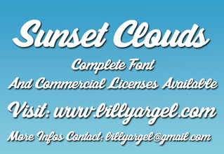 Шрифт Sunset Clouds Personal Use. Гарнитура содержит 1 файл и поддерживает 12 языков. Можно использовать в не коммерческой деятельности. Разработка Sunset Clouds Personal Use велась Billy Argel.