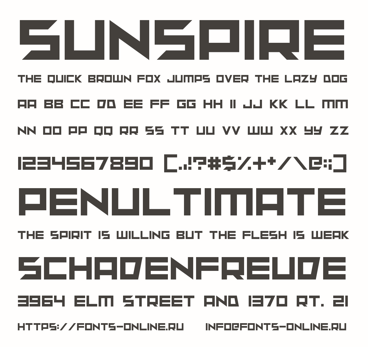 Шрифт sunspire. Гарнитура содержит 4 файла и поддерживает 12 языков. Разработка sunspire велась Darrell Flood.