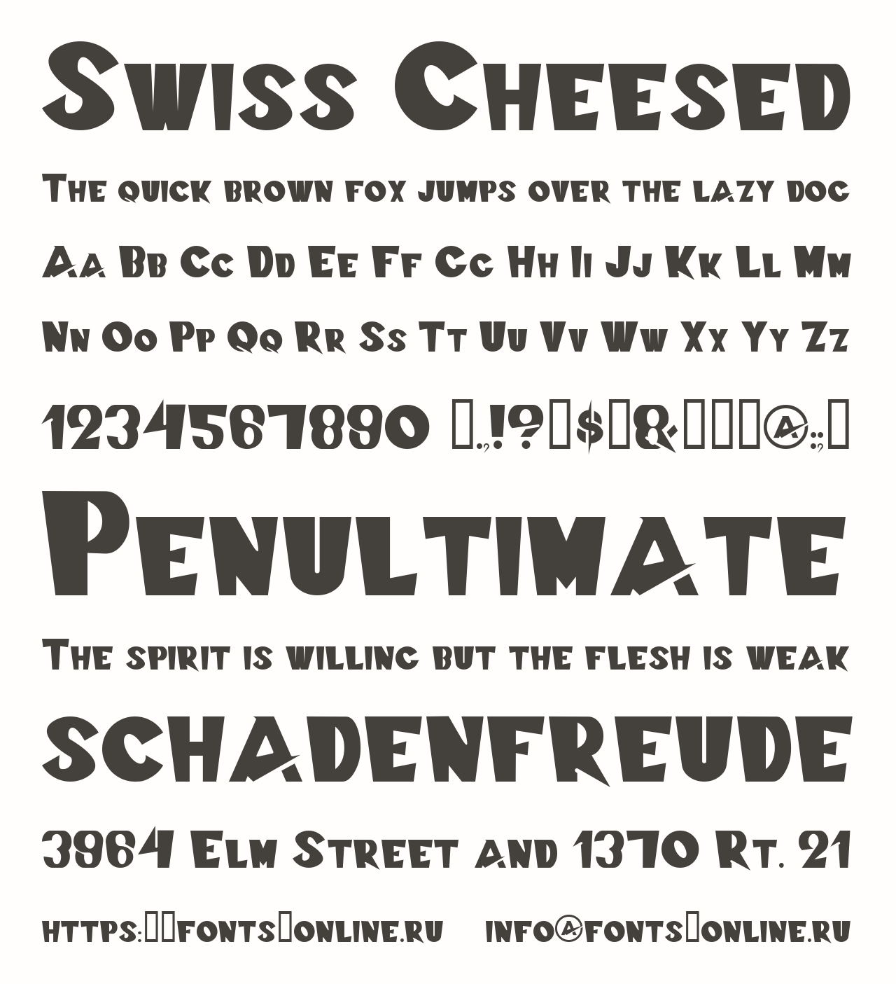 Шрифт Swiss Cheesed. Гарнитура содержит 1 файл и поддерживает 12 языков. Можно использовать в коммерческой и не коммерческой деятельности.