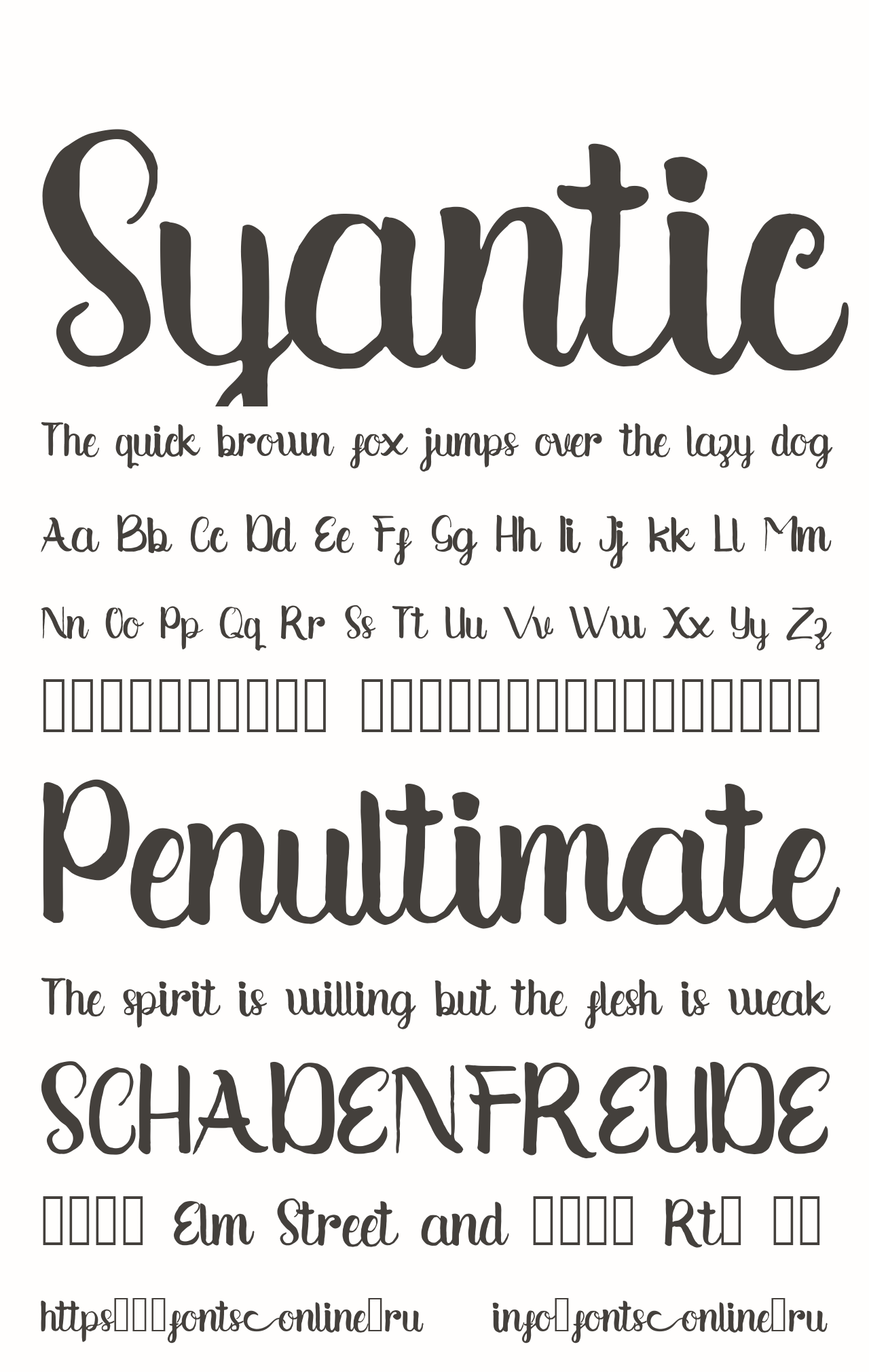 Шрифт Syantic. Гарнитура содержит 2 файла и поддерживает 12 языков. Можно использовать в не коммерческой деятельности. Разработка Syantic велась SSI.Scraps.