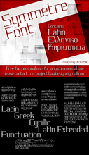 Шрифт Symmetre. Гарнитура содержит 1 файл и поддерживает 58 языков. Можно использовать в не коммерческой деятельности. Разработка Symmetre велась Harris Darmawan.