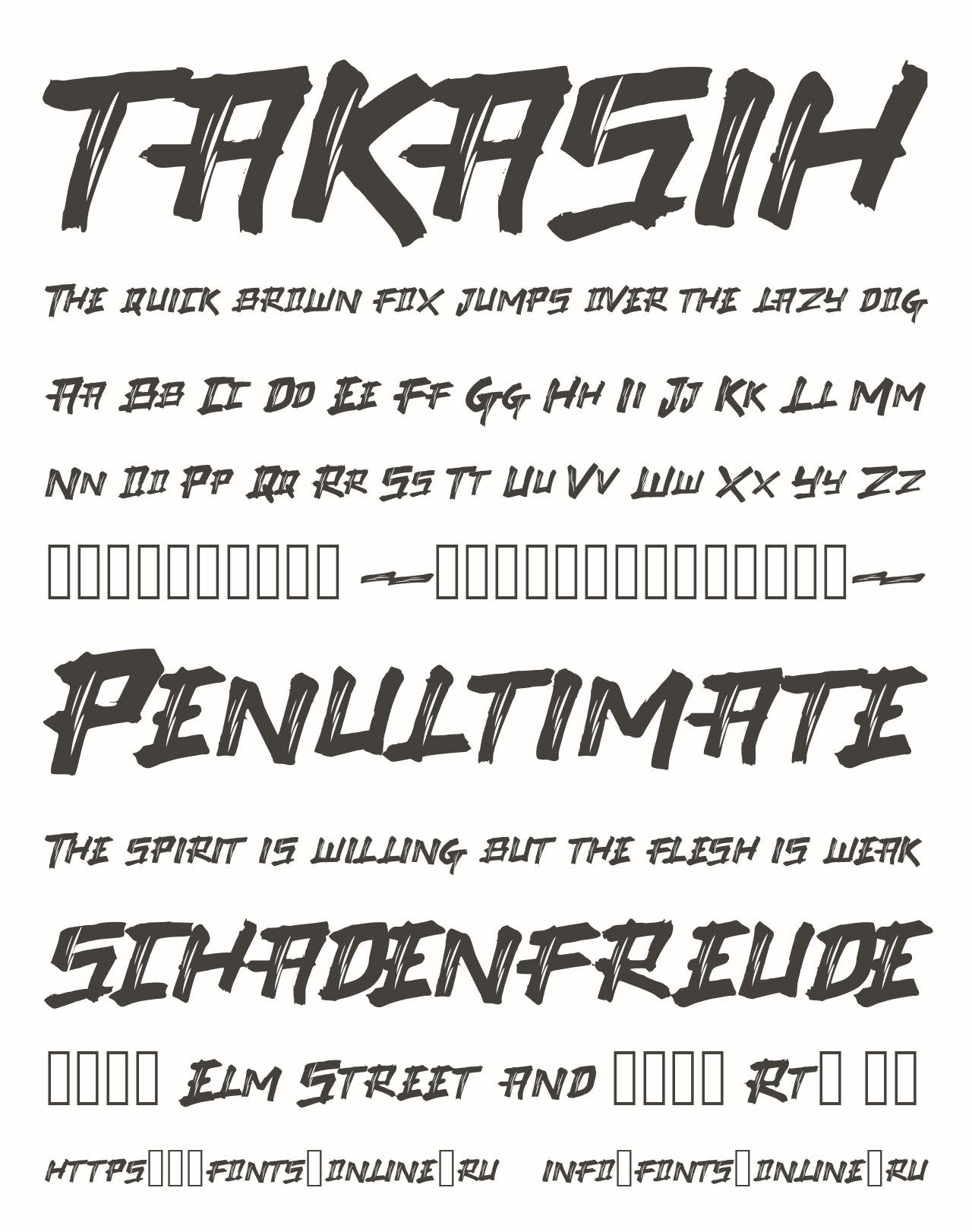 Шрифт TAKASIH. Гарнитура содержит 2 файла и поддерживает 12 языков. Разработка TAKASIH велась selawetype.