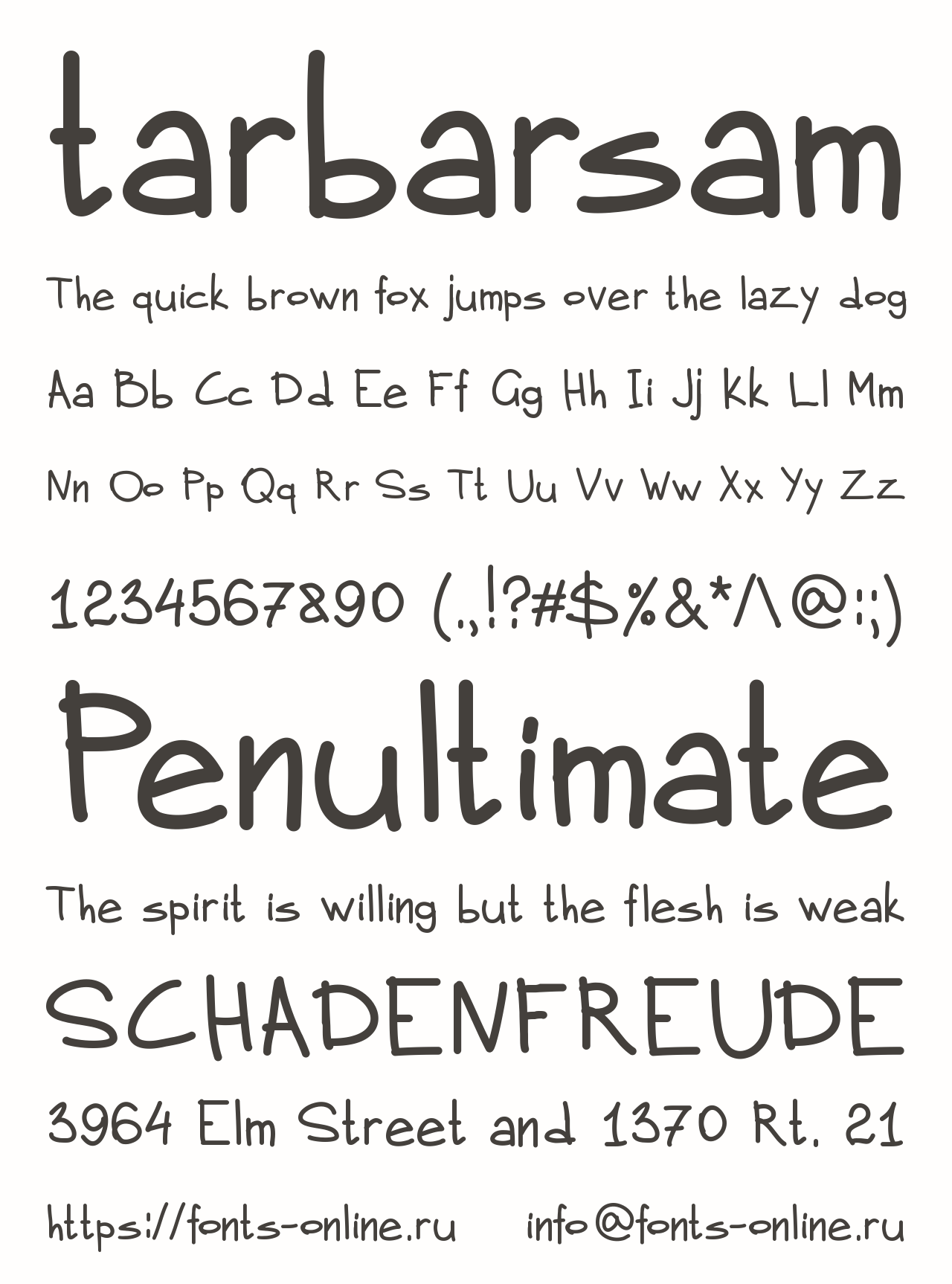 tarbarsam PinterestFacebookTwitter Скачать tarbarsam Тестировать tarbarsam Сообщить об ошибке Шрифт tarbarsam. Гарнитура содержит 1 файл и поддерживает 15 языков. Изображения Copyright tarbarsam Дополнительная информация Категории Рукописные шрифты Скетч шрифты Школьные шрифты Тематические шрифты Языки Английский Болгарский Зулу Индонезийский Корнский Оромо Руанда Рунди Русский Северный ндебеле Сомалийский Суахили Узбекский Чеченский Шона