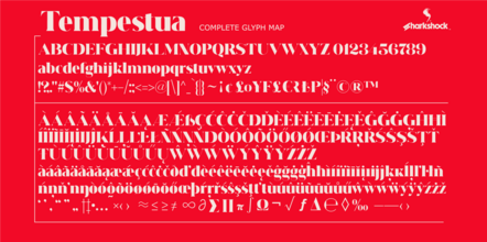 Шрифт Tempestua. Гарнитура содержит 1 файл и поддерживает 59 языков. Разработка Tempestua велась Sharkshock.