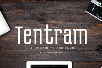 Шрифт Tentram. Гарнитура содержит 2 файла и поддерживает 60 языков. Можно использовать в не коммерческой деятельности. Разработка Tentram велась 7NTypes.