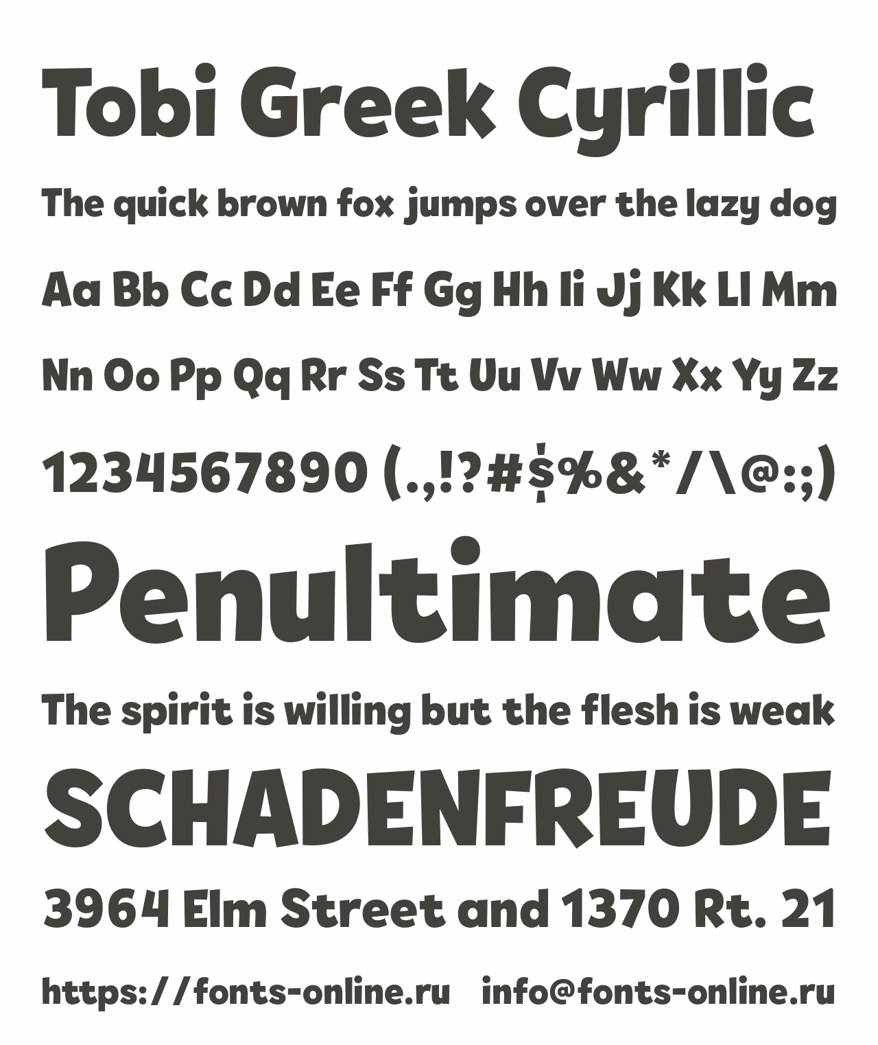 Tobi Greek Cyrillic PinterestFacebookTwitter Скачать Tobi Greek Cyrillic Тестировать Tobi Greek Cyrillic Сообщить об ошибке Шрифт Tobi Greek Cyrillic . Гарнитура содержит 5 файлов и поддерживает 61 язык. Изображения Copyright Copyright (c) 2018 by Rodrigotypo. All rights reserved. |DCNT Дополнительная информация Категории Шрифты без засечек Шрифты для заголовков Языки Албанский Английский Африкаанс Баскский Белорусский Болгарский Бретонский Букмол Валлийский Венгерский Волапюк Галисийский Греческий Датский Западнофризский Зулу Индонезийский Ирландский Исландский Испанский Итальянский Кечуанский Кикуйю Корнский Латышский Литовский Луганда Люксембургский Малагасийский Мальтийский Мэнский Немецкий Нидерландский Новонорвежский Оромо Польский Португальский Романшский Руанда Рунди Русский Санго Северносаамский Северный ндебеле Словацкий Словенский Сомалийский Суахили Турецкий Узбекский Фарерский Финский Французский Хорватский Чеченский Чешский Шведский Шона Шотландский Эсперанто Эстонский