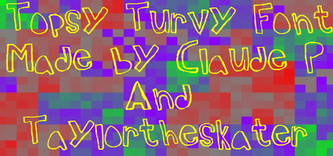 Шрифт Topsy Turvy. Гарнитура содержит 1 файл и поддерживает 12 языков. Разработка Topsy Turvy велась TaylorTheSkater.