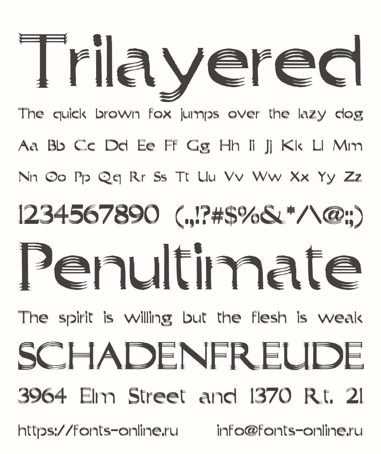Шрифт Trilayered. Гарнитура содержит 1 файл и поддерживает 12 языков. Можно использовать в коммерческой и не коммерческой деятельности.