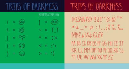Шрифт Trips of Darkness Demo. Гарнитура содержит 1 файл и поддерживает 12 языков. Можно использовать в не коммерческой деятельности. Разработка Trips of Darkness Demo велась Poemhaiku.