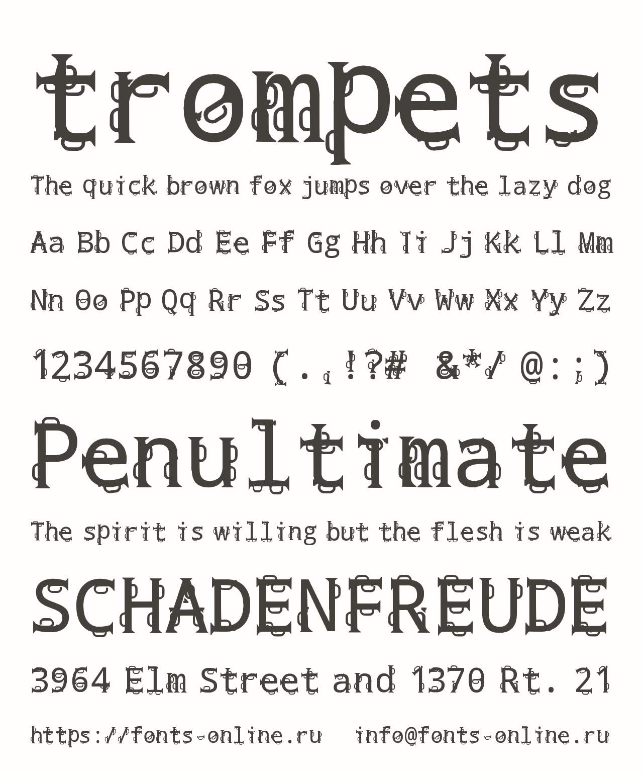 Шрифт trompets. Гарнитура содержит 1 файл и поддерживает 12 языков. Можно использовать в коммерческой и не коммерческой деятельности.