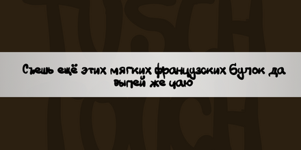 Шрифт Tusch Touch 4. Гарнитура содержит 4 файла и поддерживает 67 языков. Можно использовать в не коммерческой деятельности. Разработка Tusch Touch 4 велась Mans Greback.