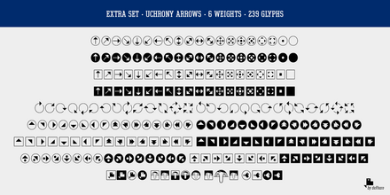 Шрифт Uchrony Arrows. Гарнитура содержит 3 файла и поддерживает 41 язык. Можно использовать в не коммерческой деятельности. Разработка Uchrony Arrows велась deFharo.