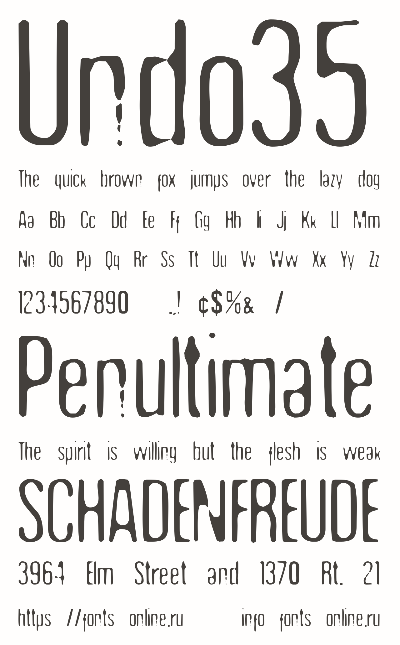 Шрифт Undo35. Гарнитура содержит 2 файла и поддерживает 12 языков. Можно использовать в коммерческой и не коммерческой деятельности.