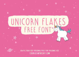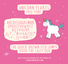 Шрифт UnicornFlakes. Гарнитура содержит 1 файл и поддерживает 34 языка. Можно использовать в не коммерческой деятельности. Разработка UnicornFlakes велась Nina.